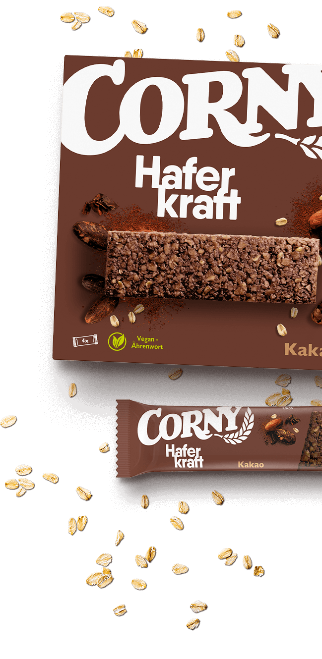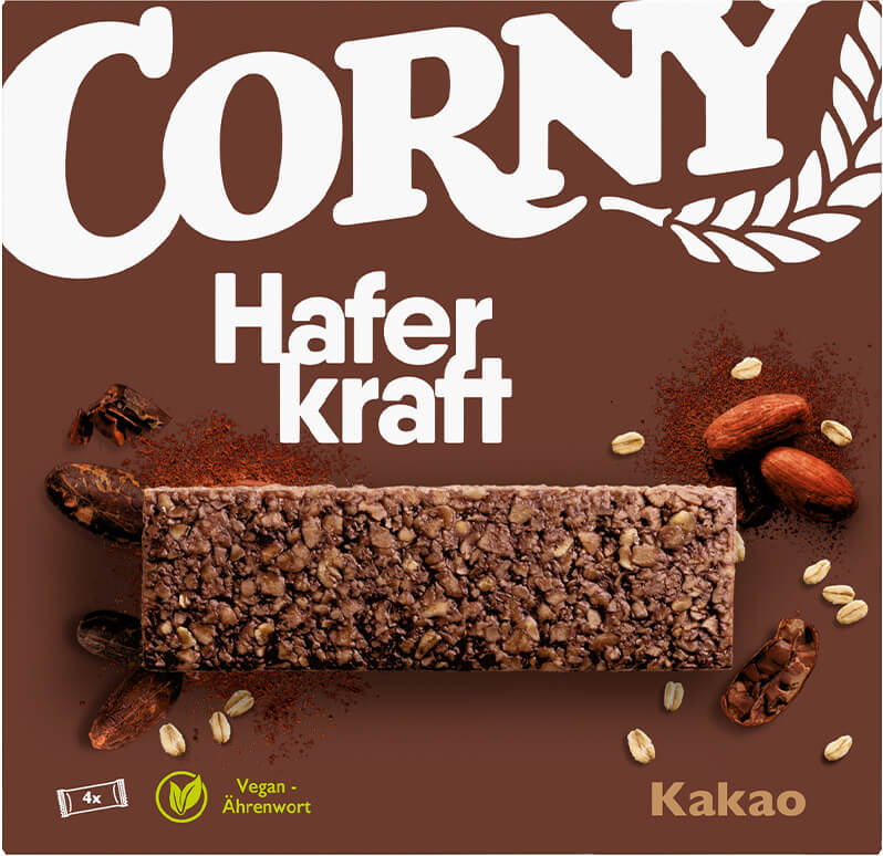 CORNY Haferkraft Kakao – dein perfekter Snack für den großen oder kleinen Hunger zwischendurch.