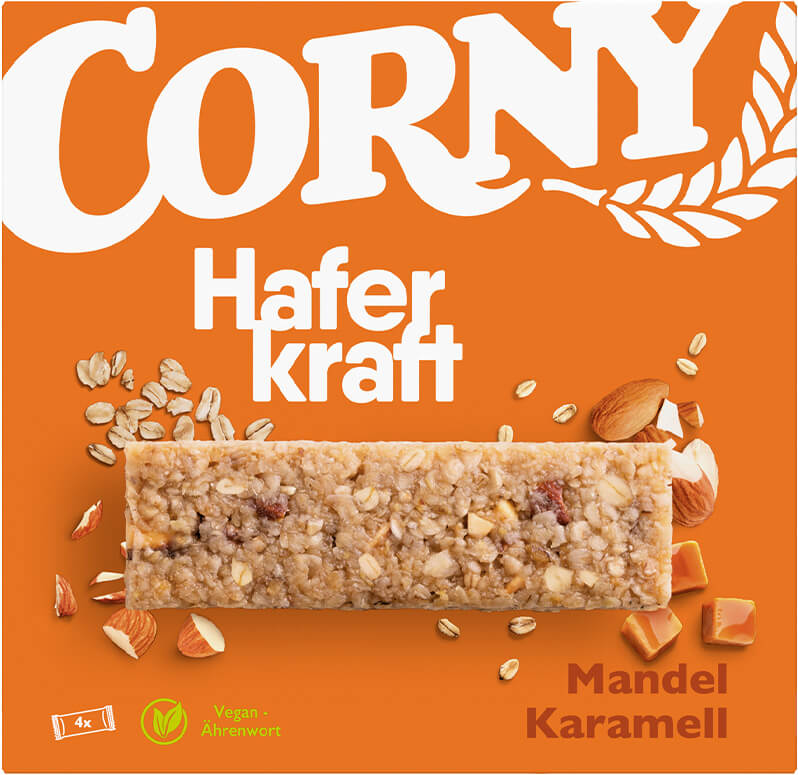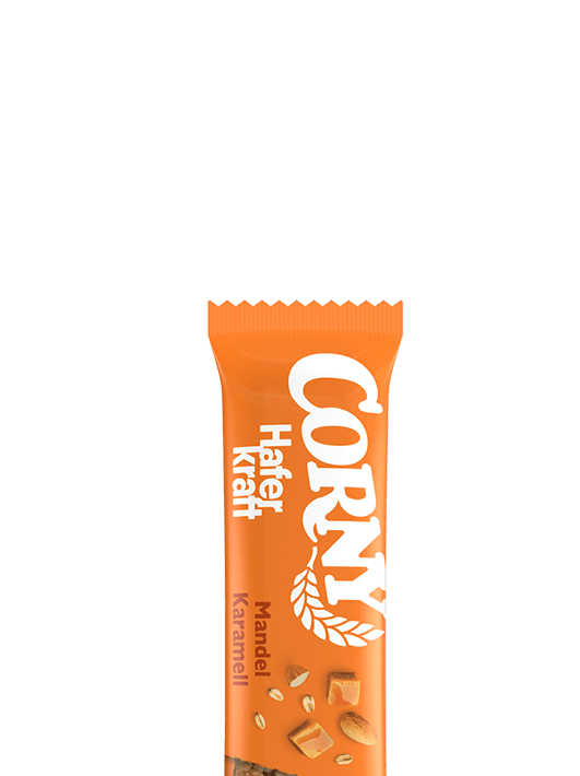 CORNY Haferkraft Mandel Karamell – dein perfekter Snack für den großen oder kleinen Hunger zwischendurch.